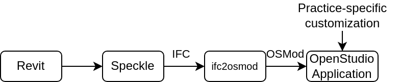 Then why not write an OSMod export for Speckle (speckle2osmod), so you can go from Revit → Speckle → OSMod. If I do this, I will need to maintain ifc2osmod and speckle2osmod for my workflow to remain open for Revit and FreeCAD, which will have overlapping functions with both libraries exporting to OSMod. If I do speckle2ifc and ifc2osmod, I do not repeat myself within the two libraries and each library serves a well-defined task. The latter case is conceptually clearer which makes it easier for maintenance.